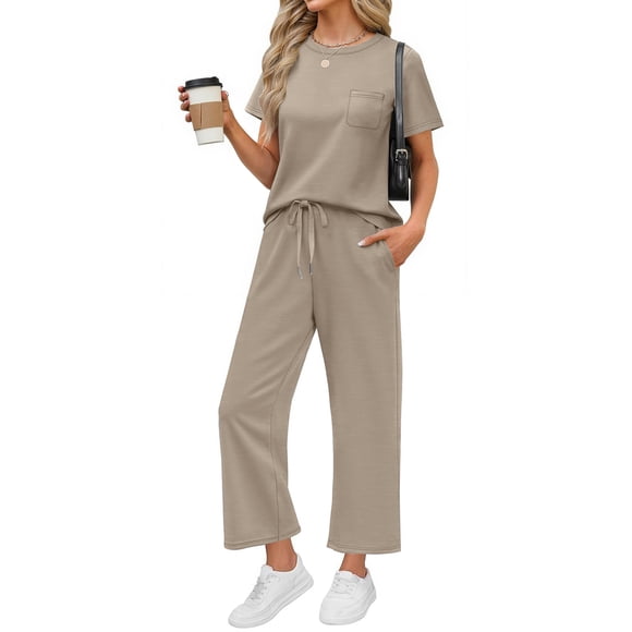In 50+ people's carts 2 Piece Sets for Women Casual Summer Travel Vacation Outfits Short Sleeve Tops Wide Leg Pants Lounge Sets $21.99 Was $40.99