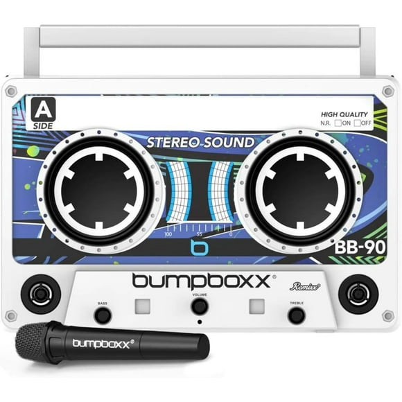 Restored Bumpboxx Remixx Bluetooth Boombox Bluetooth Speaker with The Looks of a Cassette | Bringing Back The Retro Cassette Vibes | Includes Wireless Microphone | White Frost (Refurbished) $159.99