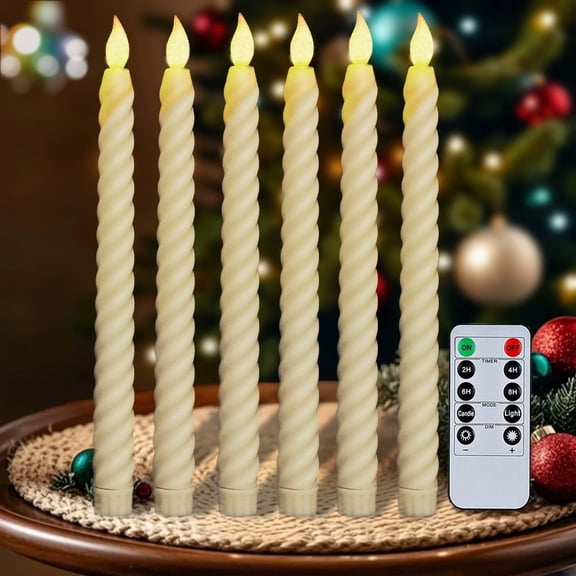 Flash Deal HIDAWN 6Pack Twisted Flameless Taper Candles with Remote Timer,10.04'' Dripless LED Electric Candlesticks,Battery Operated 3D Flame Wick Flickering Fake Window Candles-Ivory $14.98 Was $33.99