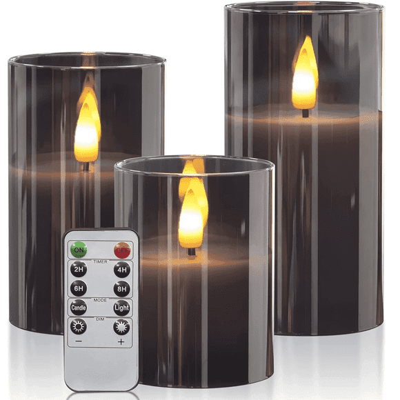 Best seller HIDAWN Flameless Candles Flickering with Remote and Timer,3D Wick Acrylic Electric Fake Candles, Battery Operated LED Pillar Candle-Gray 4''x5''x6'' $16.11 Was $34.99